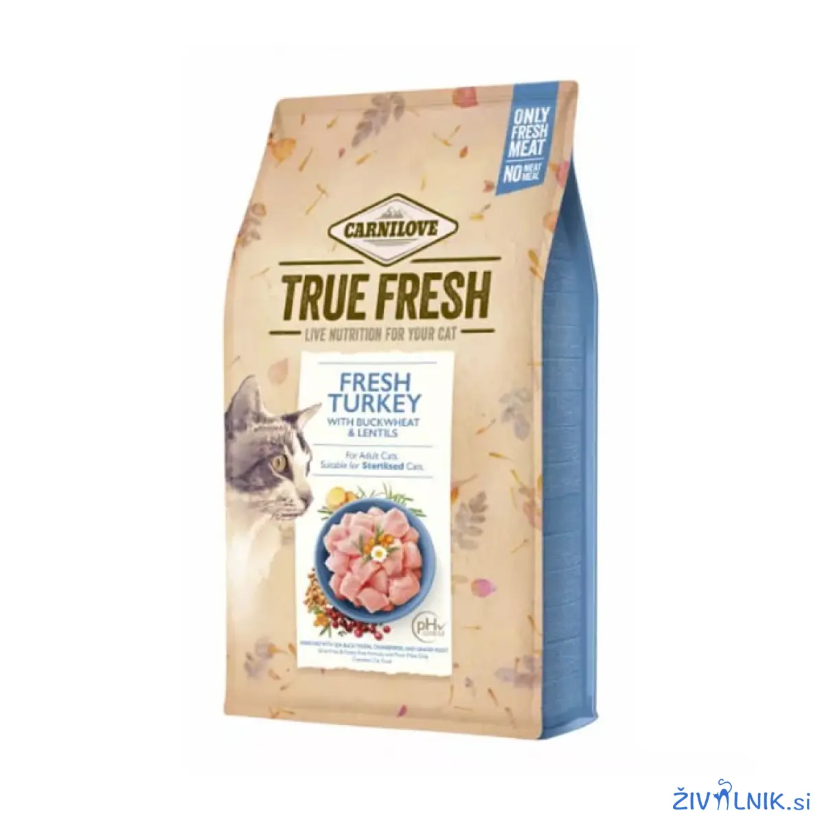 Carnilove briketi True Fresh z okusom purana so izdelani iz kakovostnega svežega mesa (70%). Primerni so za odrasle sterilizirane mačke. Dodatek borovnic, rakitovca in brusnic ohranjajo optimalen ph urina (preprečujejo nastajanje urinskih kamnov in ledvičnih bolezni). Dodane imajo vitamine, minerale in antioksidante za zdrav imunski sistem, omega – 3 maščobne kisline zagotavljajo zdravo kožo in dlako, prehranske vlaknine pa učinkovito prebavo.