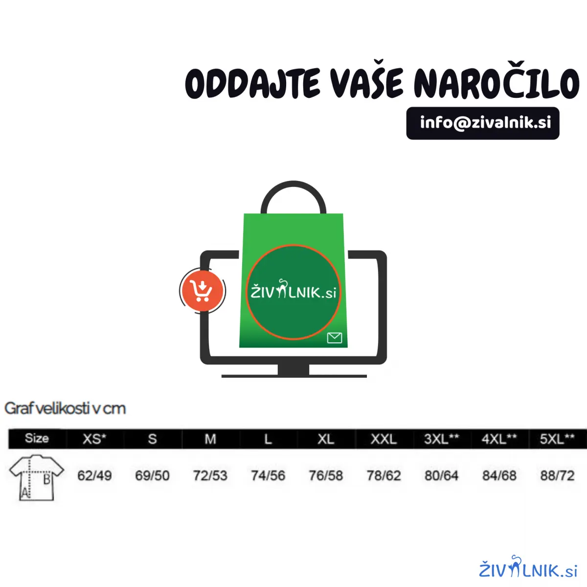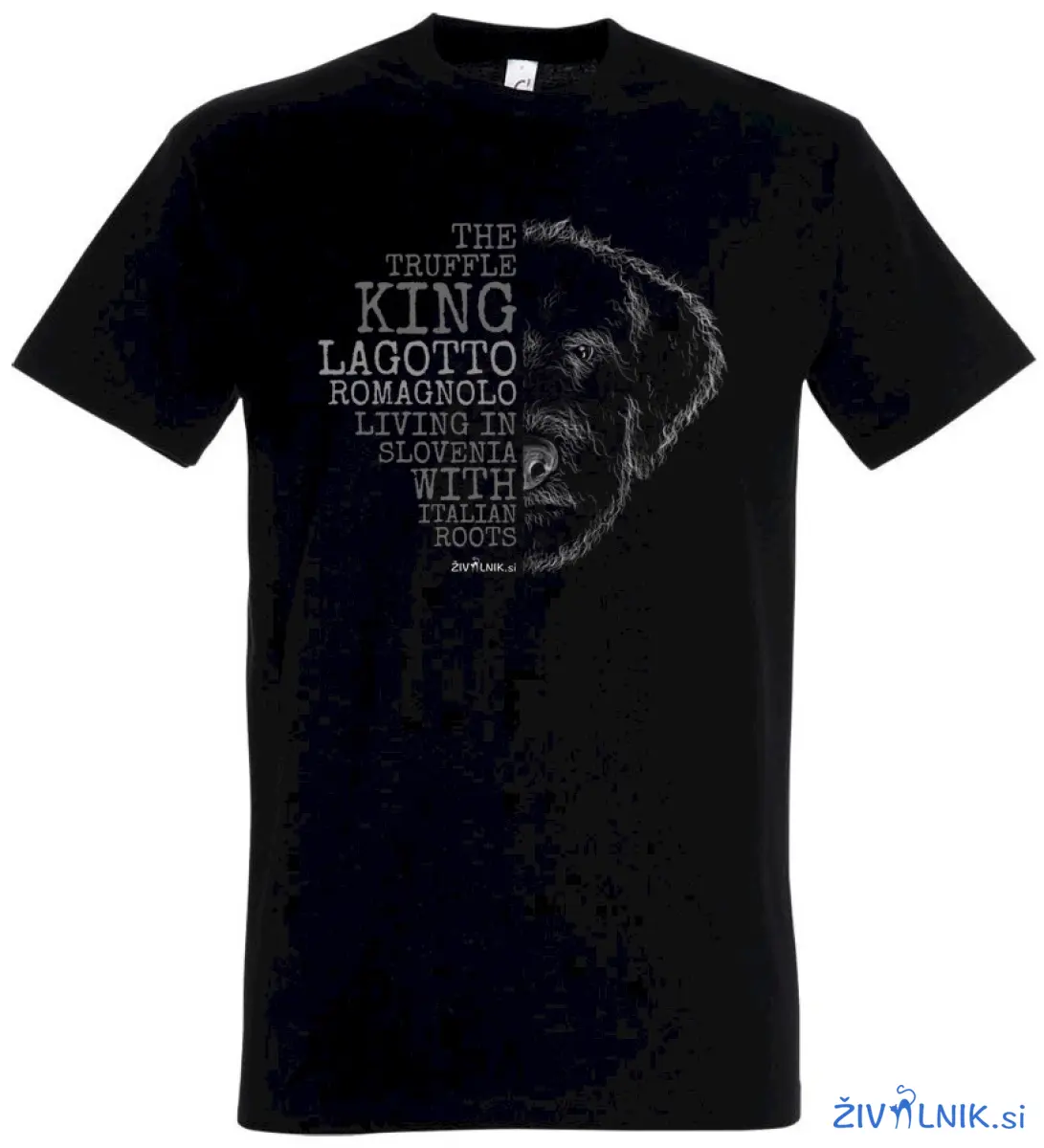 Dragi lastniki kodrastih Lagottcev in vsi ostali, ki ste se zaljubili v to zares posebno in pre?udovito pasmo ku?kov, Romanski vodni pes - Lagotto Romagnolo: ponosno vam predstavljamo slovenski izdelek, ki smo ga pripravili posebej za vas. Zdru?ili smo klasi?no ?rno majico, ki vedno znova prepri?a ter unikatno kreativo, ki je nastala pod okriljem mlade slovenske ilustratorke. Majico odlikuje izjemna kvaliteta ''premium linije'' ter poseben kroj, ki se lepo prilega telesu. Majica nima stranskih ?ivov, trak v ovratniku pa je izjemno vzdr?ljiv in narebran. Povr?ina majice sestoji iz 100% delno-?esanega vija?nega preden bomba?a, ki je idealen za tisk. Ker vam ?elimo ponuditi le najbolj?e, vam zagotavljamo visoko kakovost natiska na izbranem tekstilnem izdelku. Uporabljamo metodo DTG / digitalnega tiska na tekstil, z ekolo?kimi barvami na vodni osnovi, ki jih nato fiksiramo z naravno kislino. Kon?ni izdelek je izjemno kakovosten, ?ivahnih barv, obstojen ter mehak na otip in elasti?en.