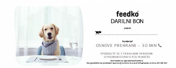 ► Svetovanje o prehrani prilagojeni izključno za vašega kužka, v sodelovanju s Feedko in strokovnjakinjo za prehrano psov in mačk Daša Korže, mag. inž. zoot.
