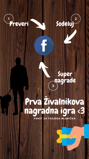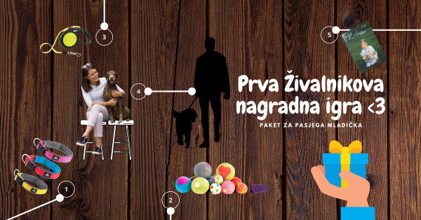 V nagradni igri bo podeljen Paket za pasjega mladička, ki vsebuje 1x povodec blagovne znamke Flexi, 1x ovratnico blagovne znamke Loomp, 1x naprstnik za čiščenje zob in 1x žogica blagovne znamke Wooly Paws, 1x svetovanje o prehrani psa blagovne znamke Feedko in 1x (Življenje s psom) priročnik.
