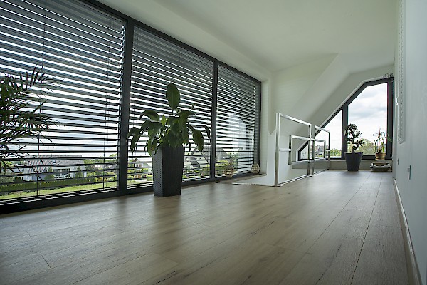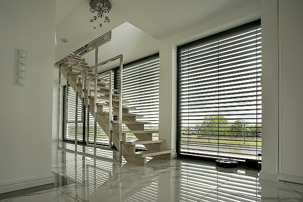 • Pogled in estetika: Zunanje žaluzije, ko so nastavljene ali umaknjene, omogočajo neoviran pogled na prosto. Brezhibno jih je mogoče vključiti v zunanjo podobo vašega doma in izboljšati njegovo estetiko. Notranja senčila sicer nudijo zasebnost, vendar lahko delno ovirajo pogled, ko so popolnoma raztegnjena oziroma spuščena. Lahko pa jih prilagodite tako, da dopolnjujejo vaš notranji dekor in slog.