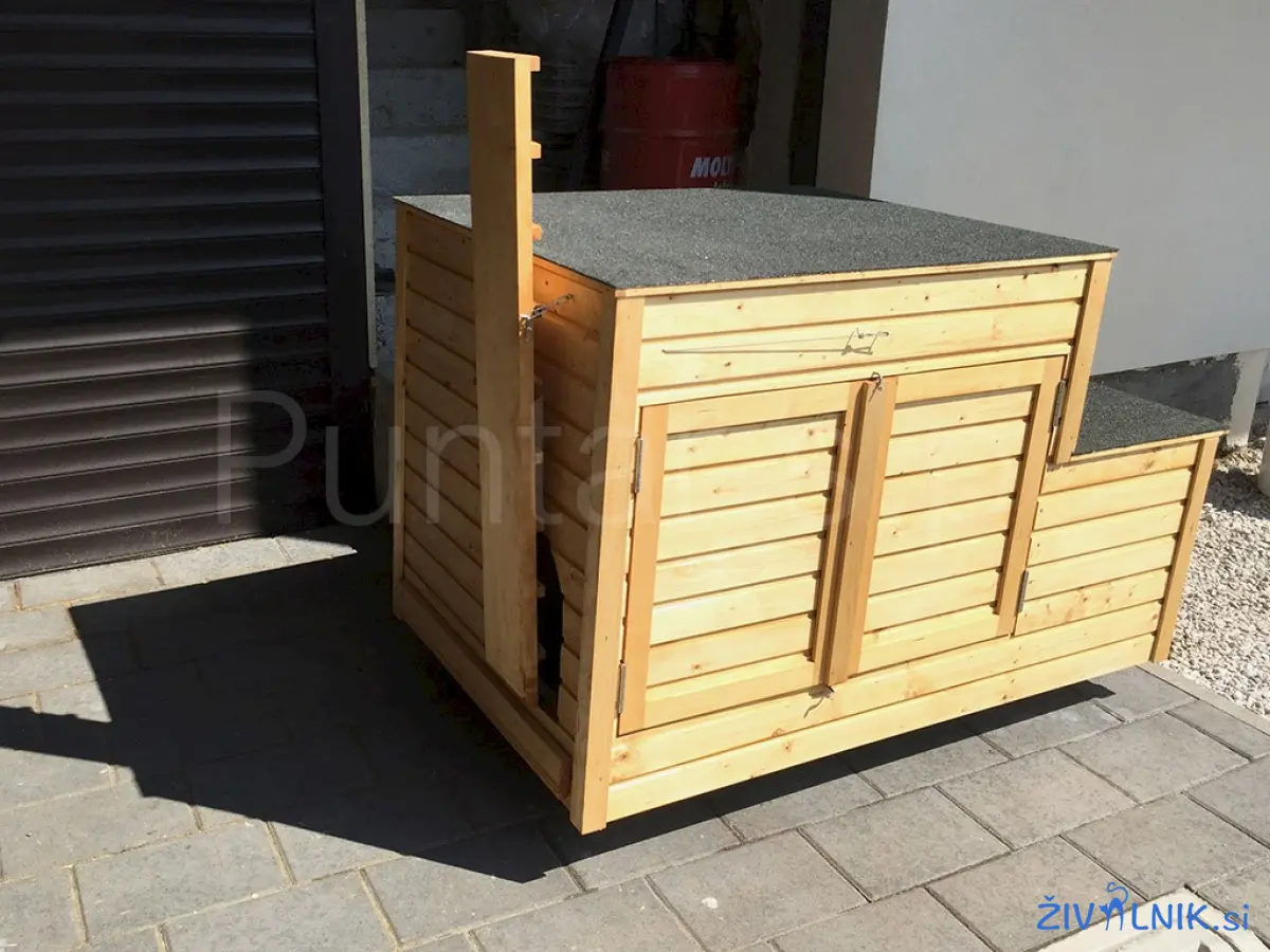 Tehni?ni podatki Koko?njak je izdelan iz masivnega smrekovega lesa. Vrata za izpust koko?i izven kurnika. Izvle?ni predal iz aluminija omogo?a hitrej?e in la?je ?i??enje iztrebkov. Streha za odpiranje valilnic omogo?a enostavno pobiranje jajc. Izdelek v osnovi ni barvan. Te?aji in zapirala so iz nerjave?ega jekla. Velikost okenc pri mre?i je 2?2 cm. Streha je izdelana iz opa?a, na opa? pa je privarjen bitumenski trak s posipom. Koko?njak je lahko tudi toplotno izoliran s stiroporjem. Z dimenzijami se lahko prilagodimo zahtevam stranke. Temu ustrezno se spremeni cena.