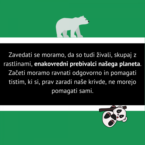 Ob tem velja dodati, da so tako kot domače tudi divje živali pomemben del našega ekosistema. Zato je še toliko bolj pomembno, da se zavedamo škodljivih posledic, ki jih lahko povzročimo z dejanji, ki niso v korist narave.
