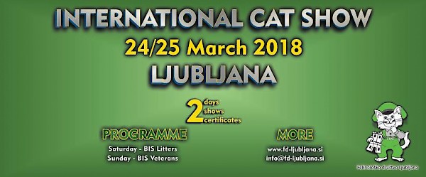 Obveščamo Vas, da bo v mesecu marcu potekala mednarodna razstava mačk | 126. in 127. International Cat Show Ljubljana.