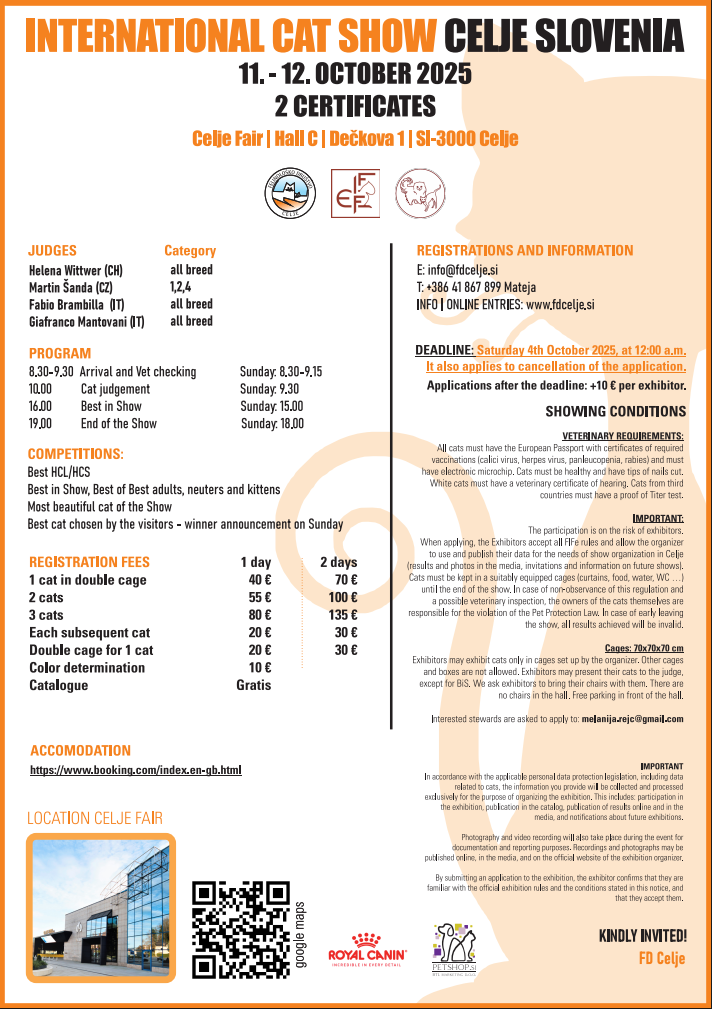 Tako kot vsako leto, bo tudi letos Celje za dva dni postalo prava prestolnica mačk! 🏆🐈⬛