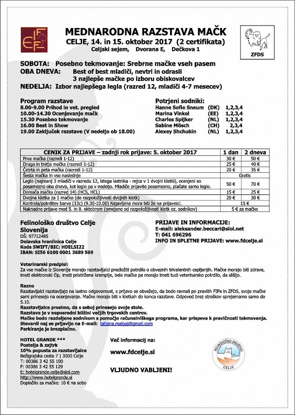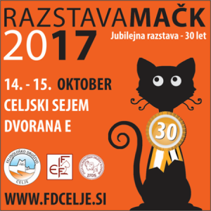 Obveščamo Vas, da bo 14. in 15. oktobra 2017 - v Celju potekala MEDNARODNA razstava mačk.