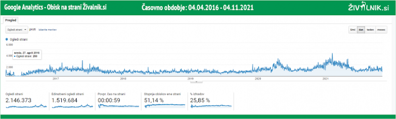 (Google Analytics - Obisk na strani Živalnik.si - 2016 / 2021)