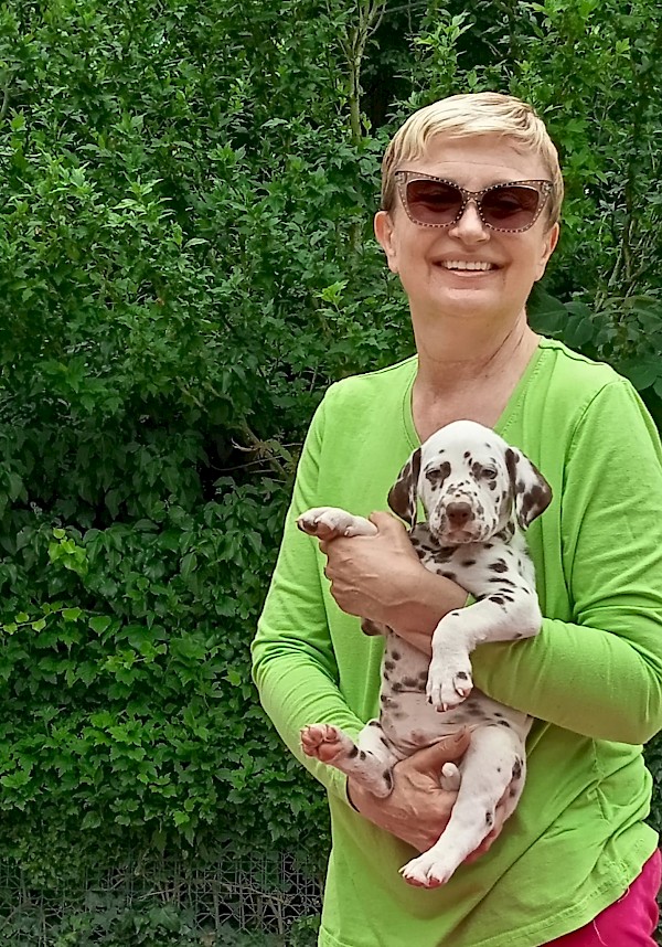 Pogosto sem ga čuavla in je najbolj zaslužen, da sem vzljubila to pasmo. Prvega dalmatinca Marka Jelenskega sem dobila leta 1973. V devetdesetih letih prejšnjega stoletja sem postla lastnica samičk Aiše in Dive Danaje, ljubezen do njiju me je motivirala za vzrejo.